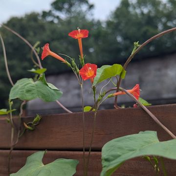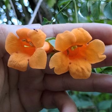 Known for its large orange-to-red blooms, this species is a favorite of hummingbirds. It can be found growing in the forest but does best when it can get some light, such as a forested edge or clearing, where it will grow very large. A climbing vine, it can be planted in shade or part shade, but will seek out the sunshine. Make sure whatever it will grow on can handle a heavy, quickly-growing vine.