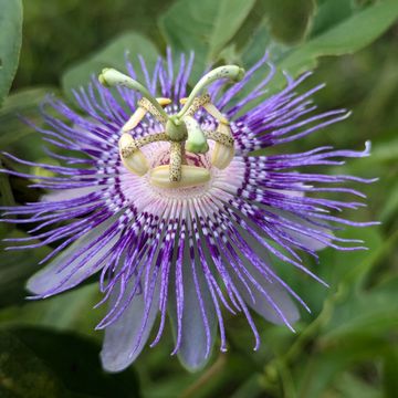 One or our most stunning native fowers, it also produces delicious fruits, known locally as "maypops". Spreads by long rhizomes - sprouts will pop up several feet from the parent plant. In a garden situation, these sprouts must be managed by persistant removal or by mowing.
