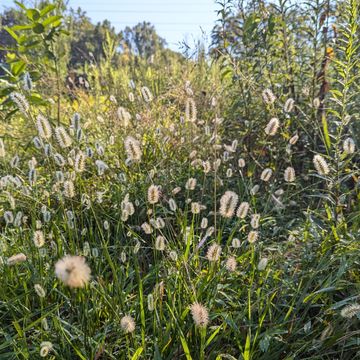 One of our showiest native grasses, with its poofy white flowers and seeds in the fall. Can handle dry soils.